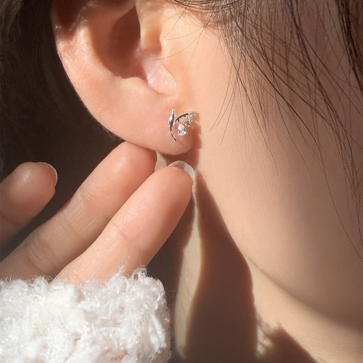 Delicate Lily of the Valley Silver Stud Earrings