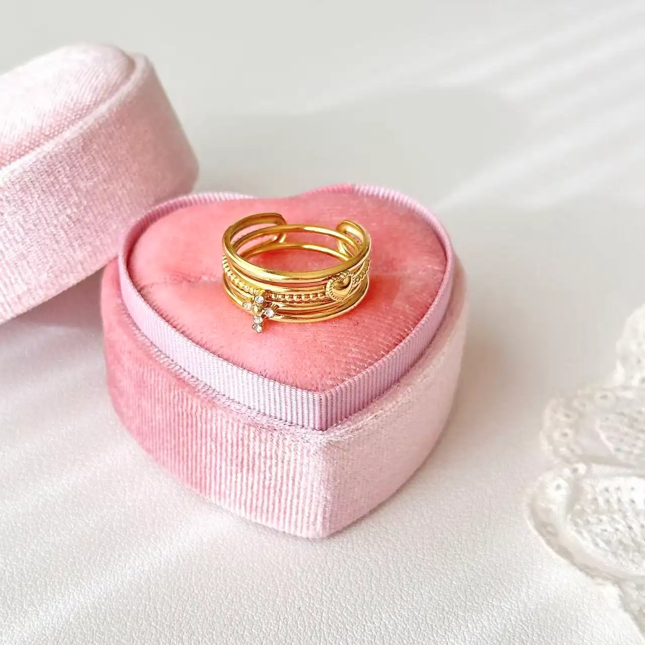 Multi-Layer Cross Heart Three-in-One Ring