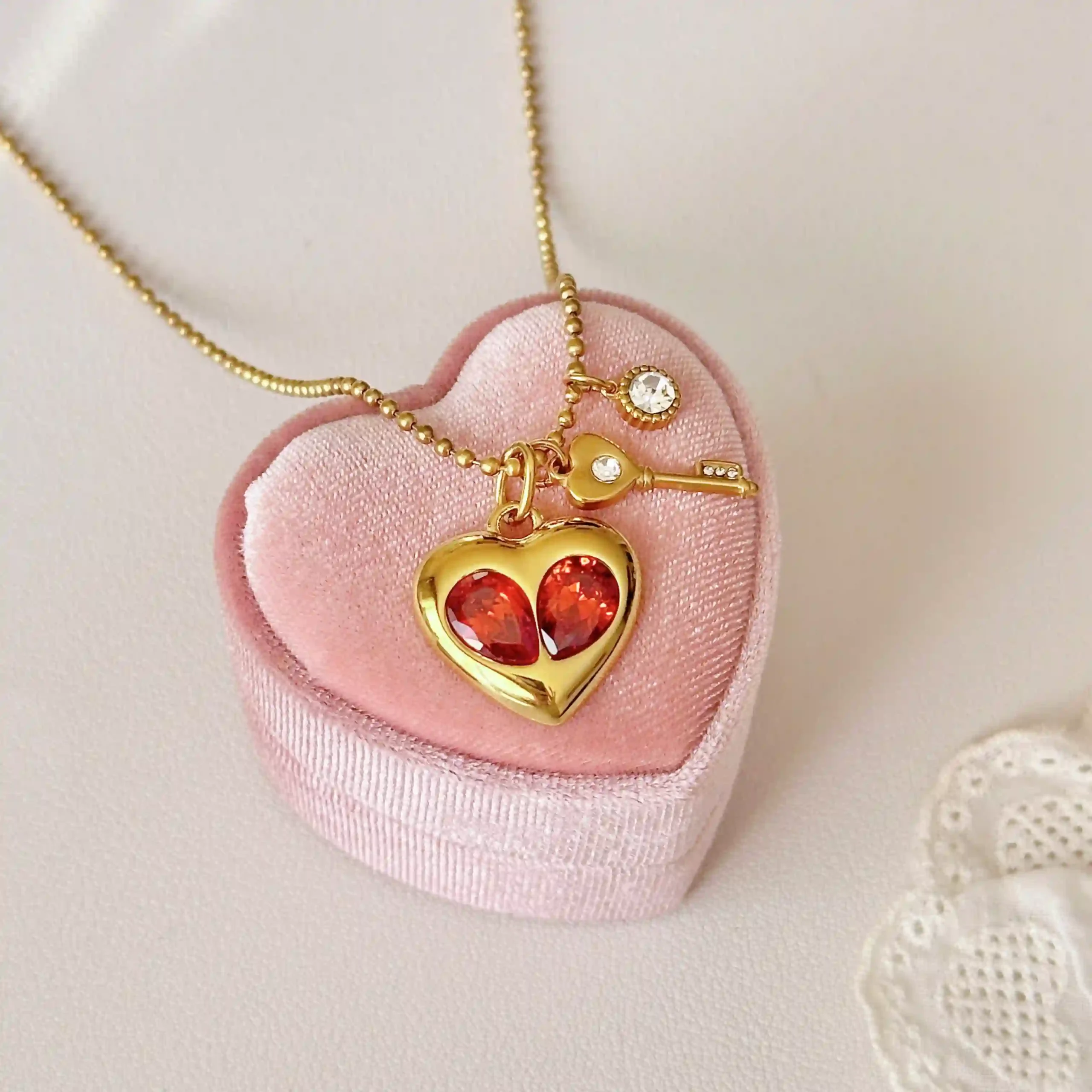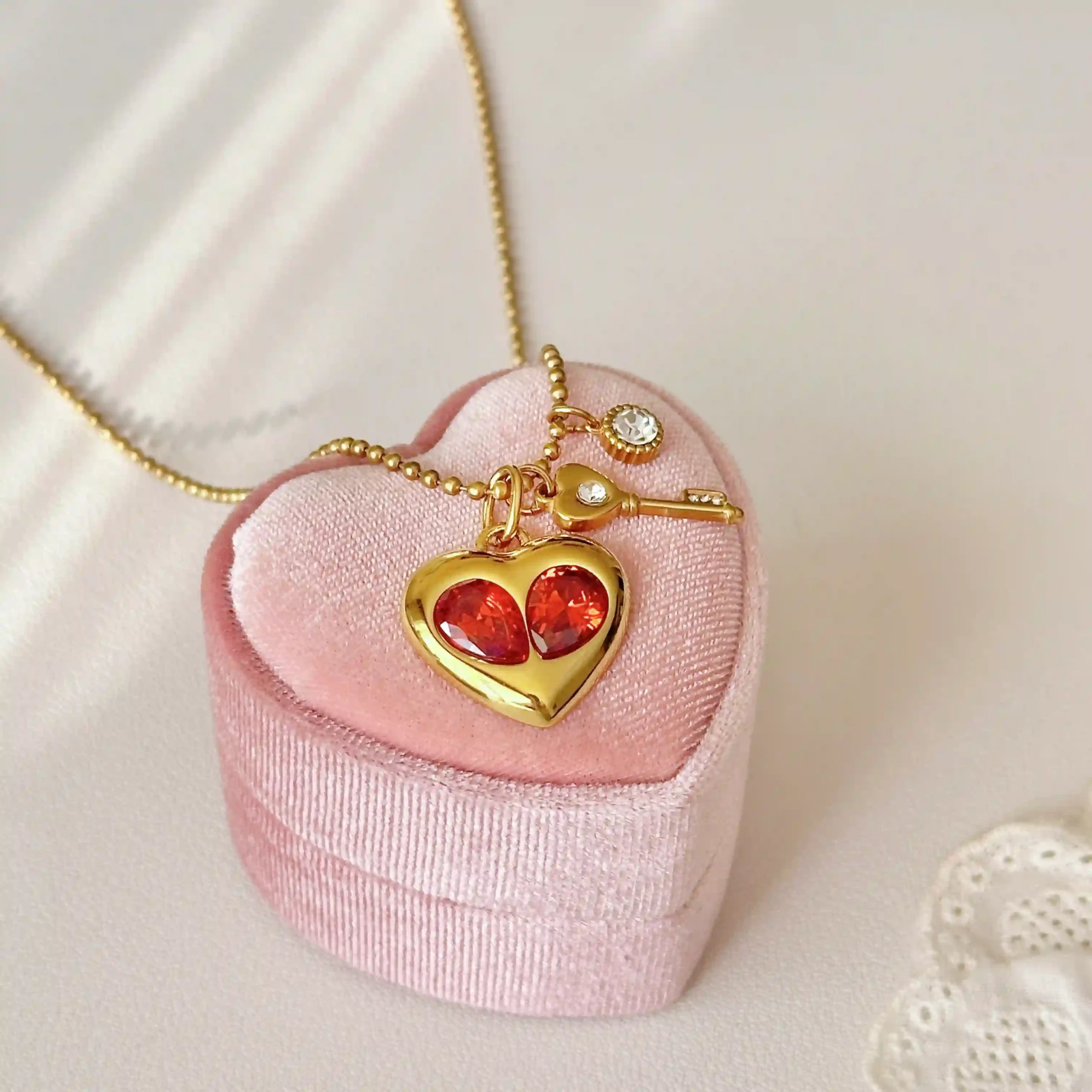 Red Zircon Heart Necklace