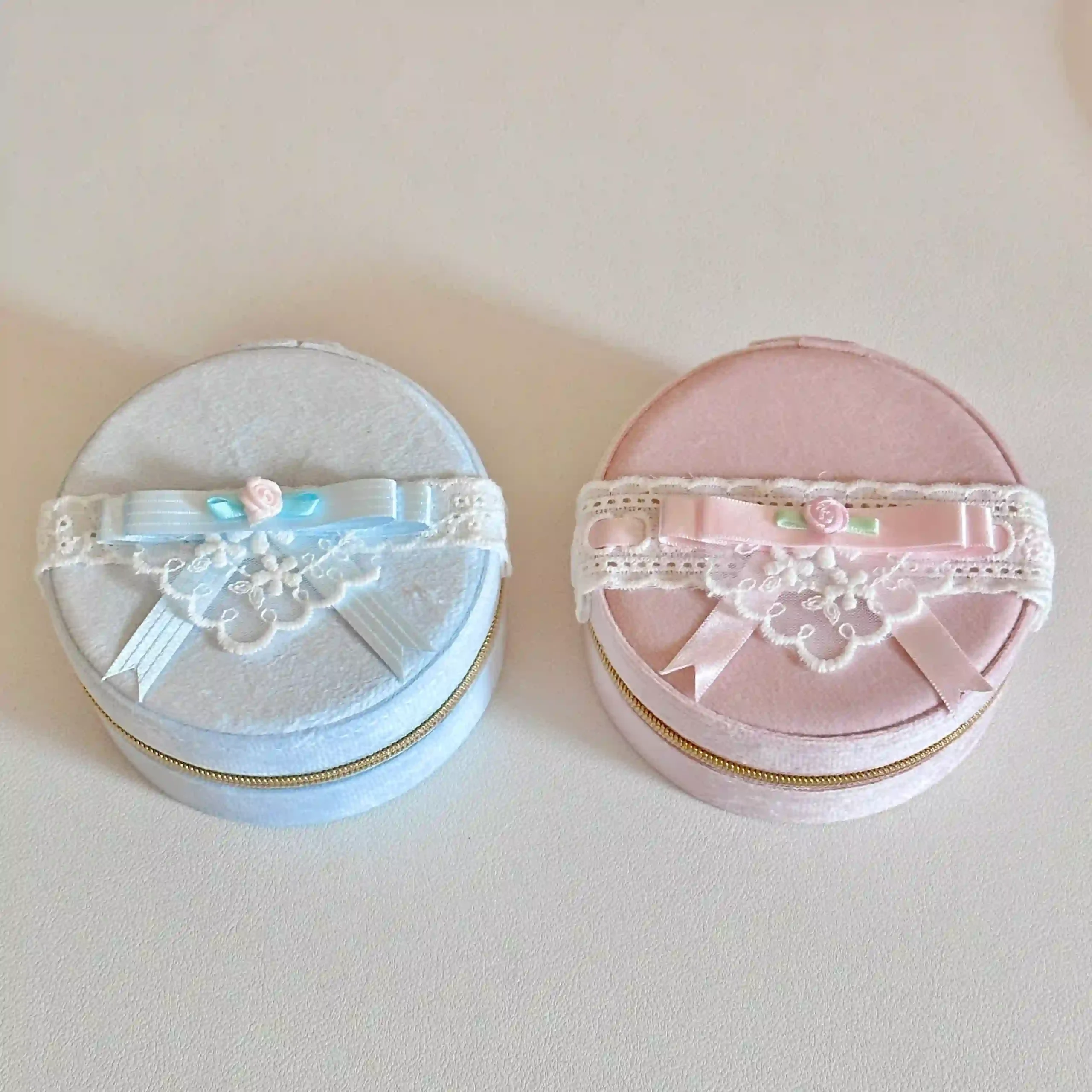 Product Details:This round jewelry box is available in soft pink and gentle blue.