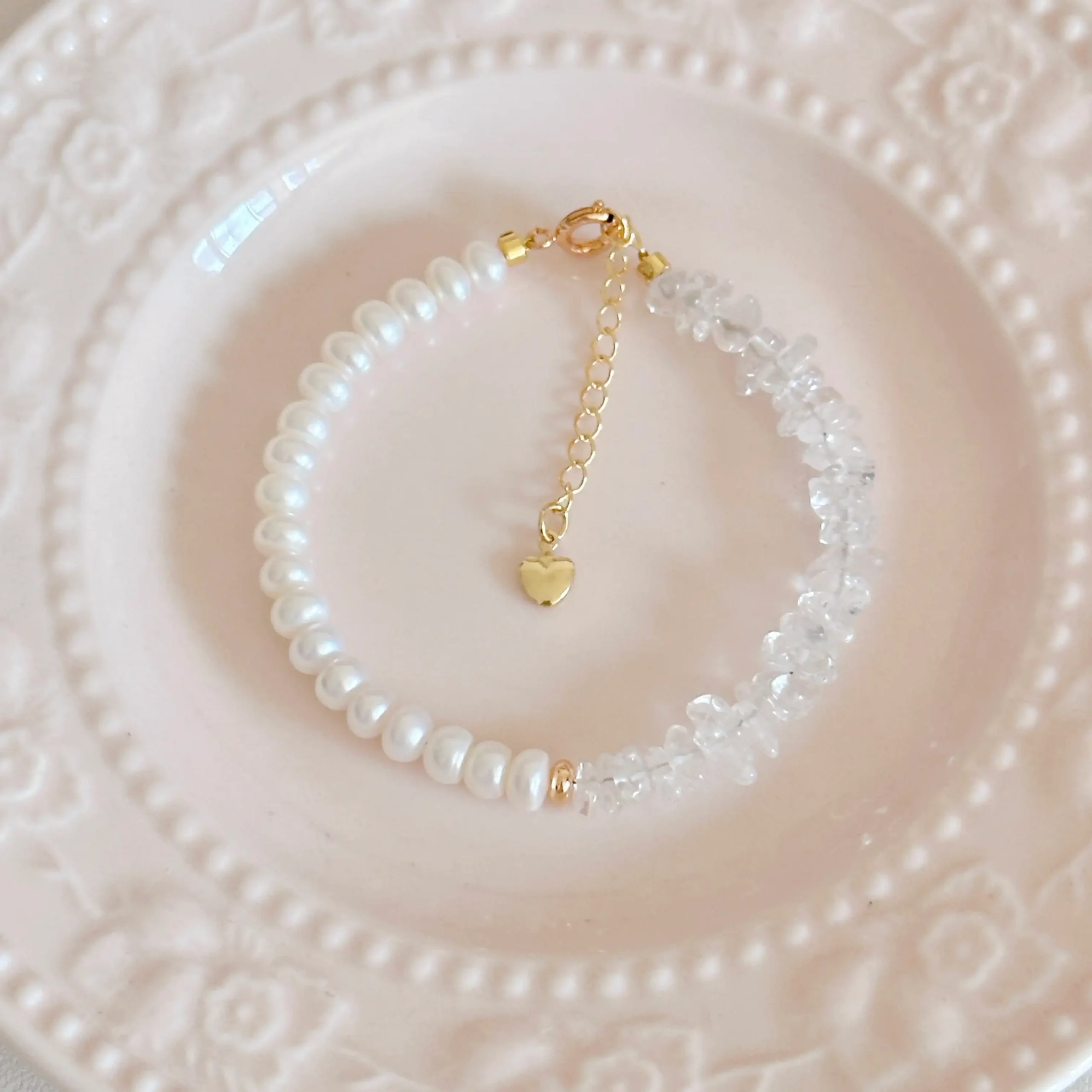 Be the first to review “Strung “Crystal Love” Natural Freshwater Pearl Bracelet”