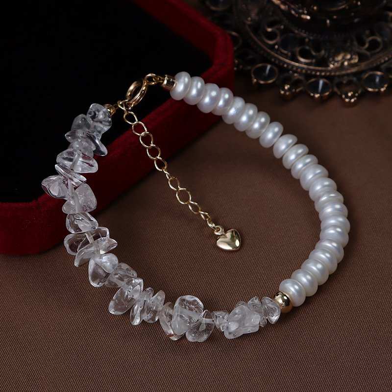 Material: Freshwater pearls +White Quartz Crushed Stone+ 14k gold-plated hardware