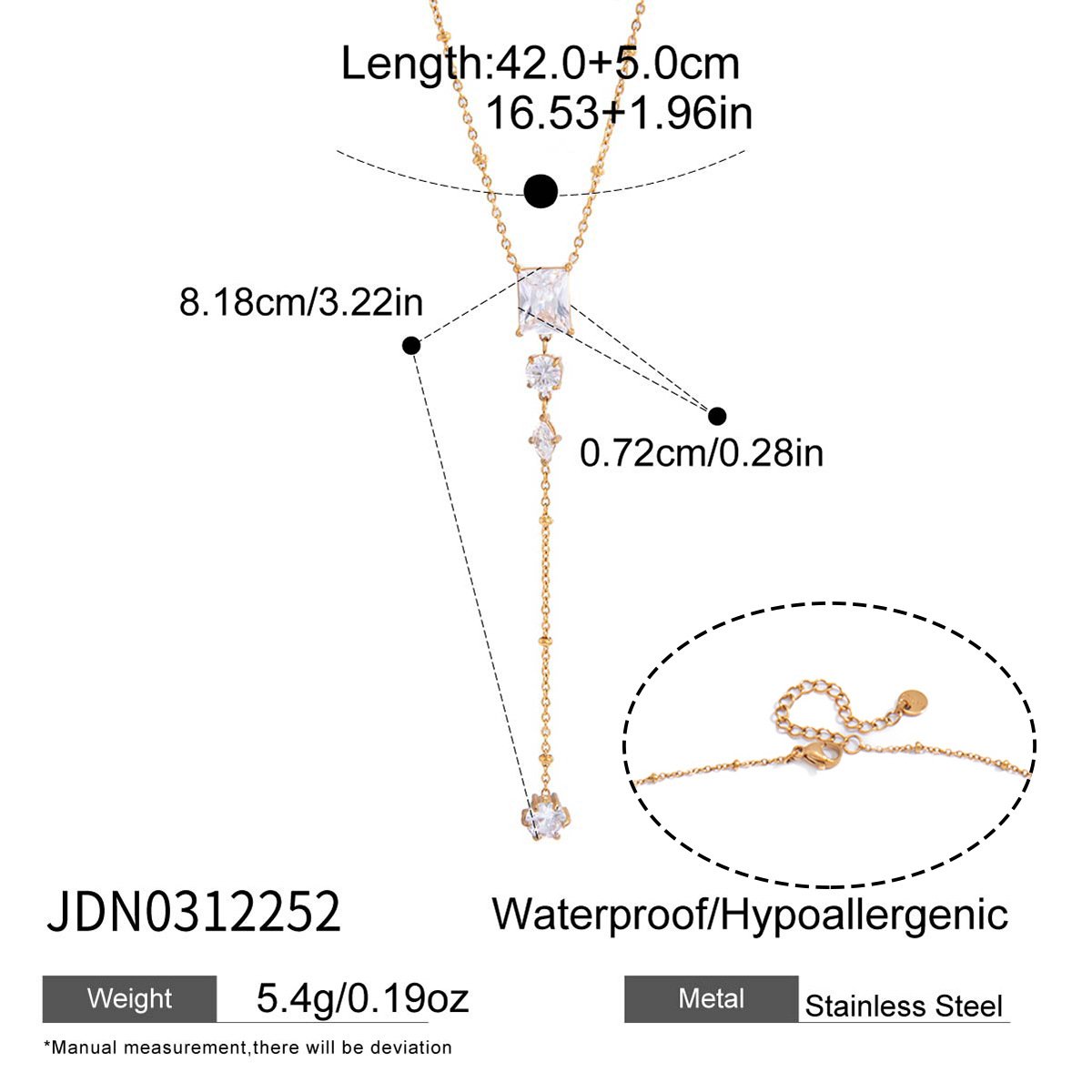 Material: 18K gold-plated stainless steel+ Zircon